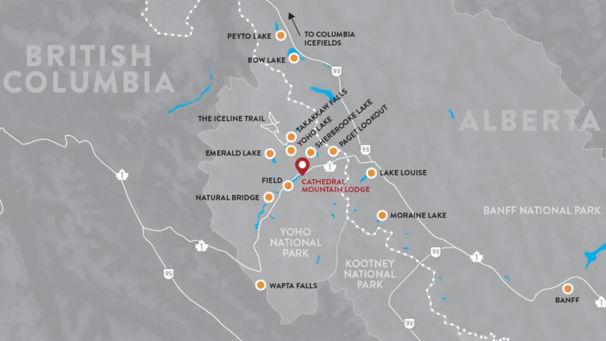 At Cathedral Mountain Lodge, your Rocky Mountain cabin lies perfectly between Yoho National Park and Lake Louise in Banff National Park, and right in the middle of everything the area has to offer. Hike the surrounding trails, canoe Moraine Lake and ride horseback through landscapes with spectacular views—and that’s just the beginning of what’s possible.